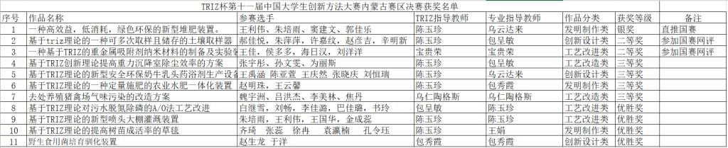 3月28-29日,由自治區科技廳、教育廳、科協主辦,內蒙古創新方法研究會、自治區科協科技教育和創新服務中心共同承辦的“2022年內蒙古創新方法大賽高校賽暨第十一屆中國TRIZ杯大學生創新方法大賽內蒙古區賽決賽”在呼和浩特舉行。包括我校在內的區內26所高校的1400余名師生的284項作品參賽。我校11項參賽作品入圍決賽。經過激烈角逐,最終我校團隊榮獲自治區銀獎1項、二等獎2項、三等獎4項、優勝獎4項,獲獎數量和層次創歷年新高。其中,1項作品直推國賽,2項作品入圍國賽網評。我校陳玉珍老師獲本屆大賽“優秀聯絡員”稱號。