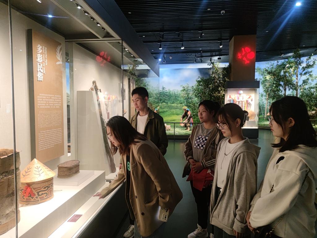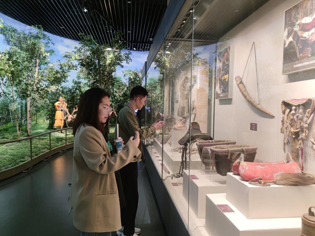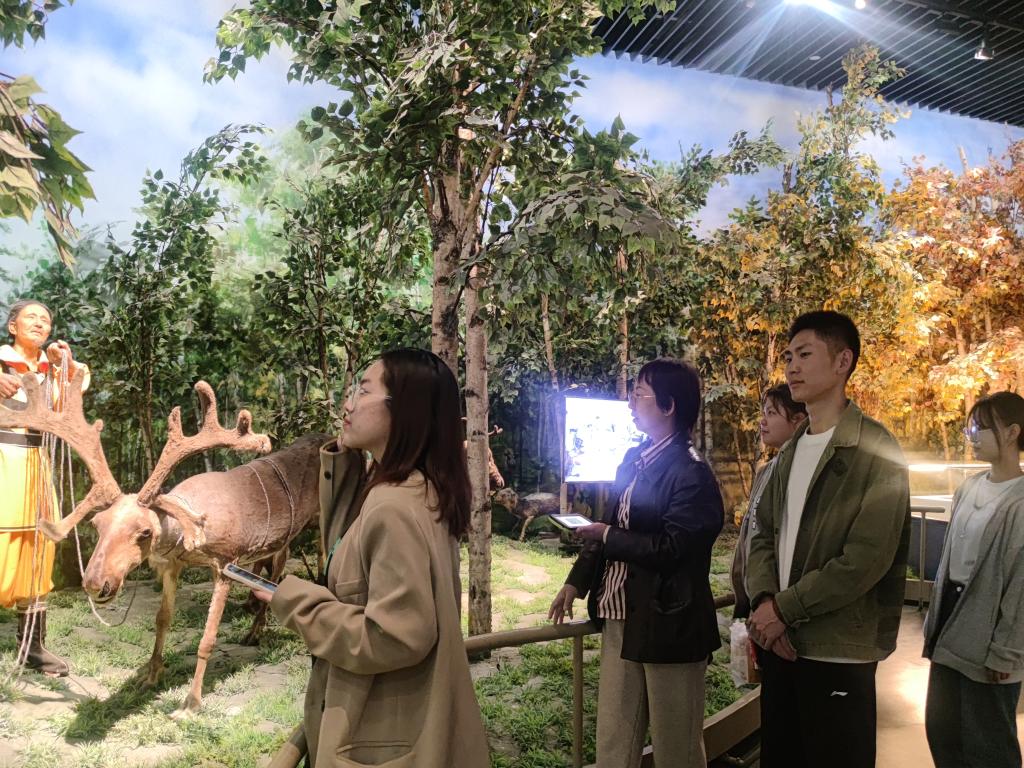 “民藝承襲”團(tuán)隊(duì)深入?yún)⒂^了內(nèi)蒙古博物院“北疆樺歌”展廳,通過(guò)實(shí)景還原景搭,多維信息介紹展板,手工藝品近景展示等展塊,閱鄉(xiāng)彩部落習(xí)俗,覽民俗風(fēng)情文化,見(jiàn)古老手工技藝,品文化發(fā)展歷史,更加深入了解學(xué)習(xí)體驗(yàn)中華優(yōu)秀傳統(tǒng)文化北疆三少民族----達(dá)斡爾族、鄂溫克族、鄂倫春族民俗風(fēng)情和藝術(shù)文化,感受瑰麗中華民族優(yōu)秀傳統(tǒng)文化、歷史成就和文化傳承,引導(dǎo)青年學(xué)生深刻領(lǐng)悟黨的領(lǐng)導(dǎo)、文化自信、堅(jiān)定理想信念和歷史使命。