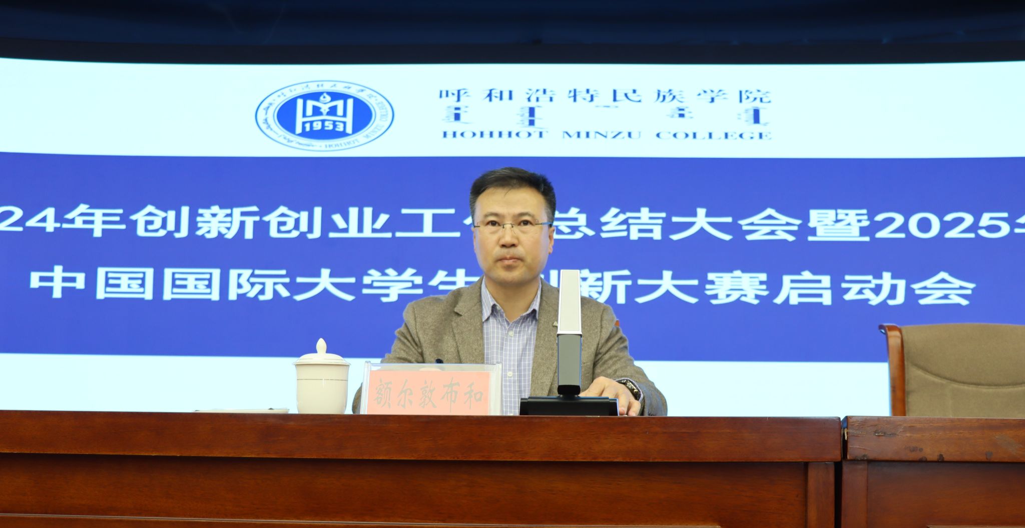 11月8日,我校2024年創新創業工作總結大會暨2025年中國國際大學生創新大賽啟動會在綜合樓12樓會議室召開。學校黨委委員、副校長額爾敦布和出席會議并講話。各二級學院書記、院長、特邀專家、研修班班教師、創新創業中心全體成員80余人參加會議。創新創業學院中心副主任包桂英主持會議。
