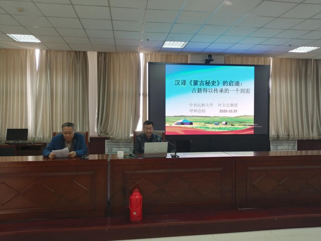 為了進一步貫徹落實習近平總書記有關民族工作的論述及指示批示精神,于2020年10月29日下午,特邀請歷史文獻研究方面的知名學者——葉爾達教授,以漢譯《蒙古秘史》的啟迪:——古籍得以傳承的一個側面為題,進行了一次鑄牢中華民族共同體意識方面的教育,我院師生共120余人聆聽該講座。
