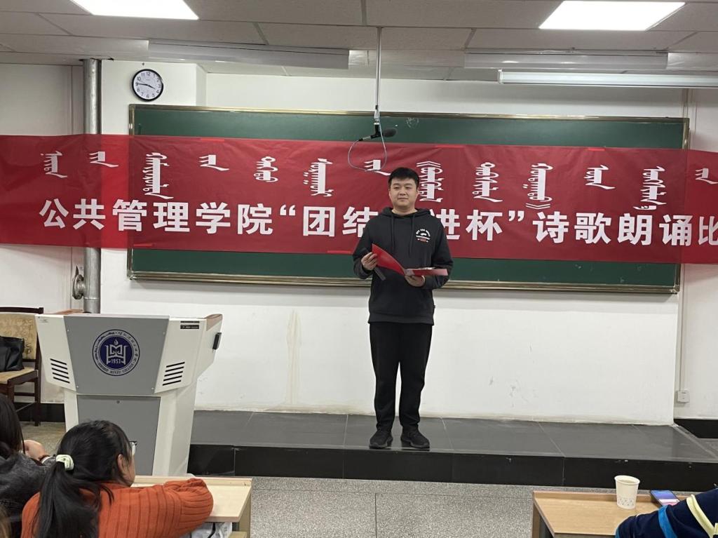 本次比賽共有5個專業的39名選手參加。各參賽選手通過熱情洋溢的朗誦,展現了當代大學生的精神風貌。經過幾輪評比,2021級行政管理專升本班白巖松、2020級文秘1班前白同學分別獲得漢語組、蒙語組一等獎。