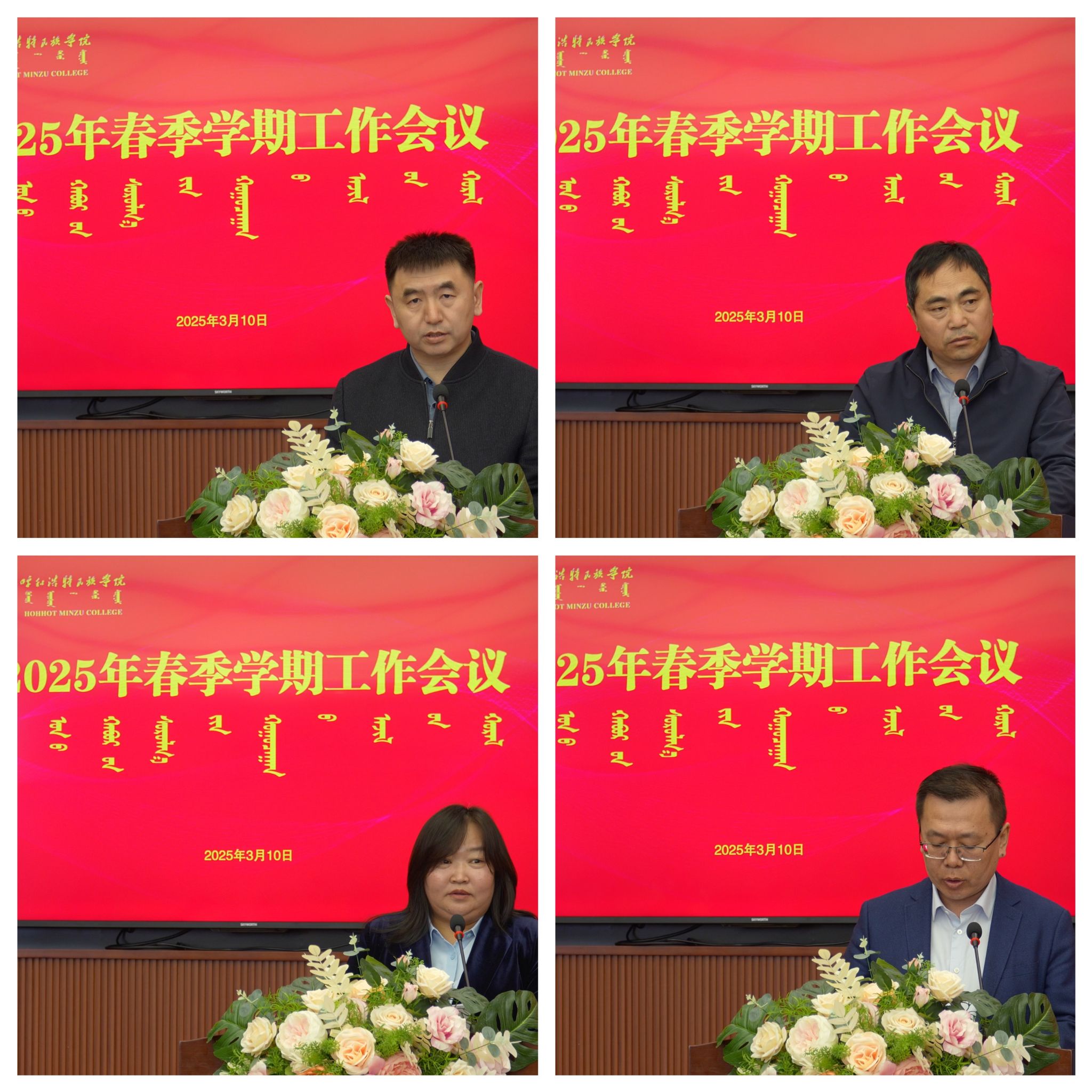 3月10日,我校在綜合樓十二樓會(huì)議室召開(kāi)2025年春季學(xué)期工作會(huì)議。會(huì)議深入貫徹落實(shí)《教育強(qiáng)國(guó)建設(shè)規(guī)劃綱要(2024-2035年)》,聚焦“強(qiáng)國(guó)建設(shè)、民院何為”的主題主線(xiàn),探討交流解決學(xué)校事業(yè)發(fā)展制約性、瓶頸性問(wèn)題的思路舉措,謀劃2025年重點(diǎn)工作。校黨委書(shū)記劉九萬(wàn)出席會(huì)議并作總結(jié)講話(huà)。校黨委副書(shū)記、校長(zhǎng)王敏回顧總結(jié)2024年工作,安排部署2025年重點(diǎn)工作。校黨委副書(shū)記格根哈斯主持會(huì)議。校領(lǐng)導(dǎo)班子成員和全體處級(jí)干部參加會(huì)議。