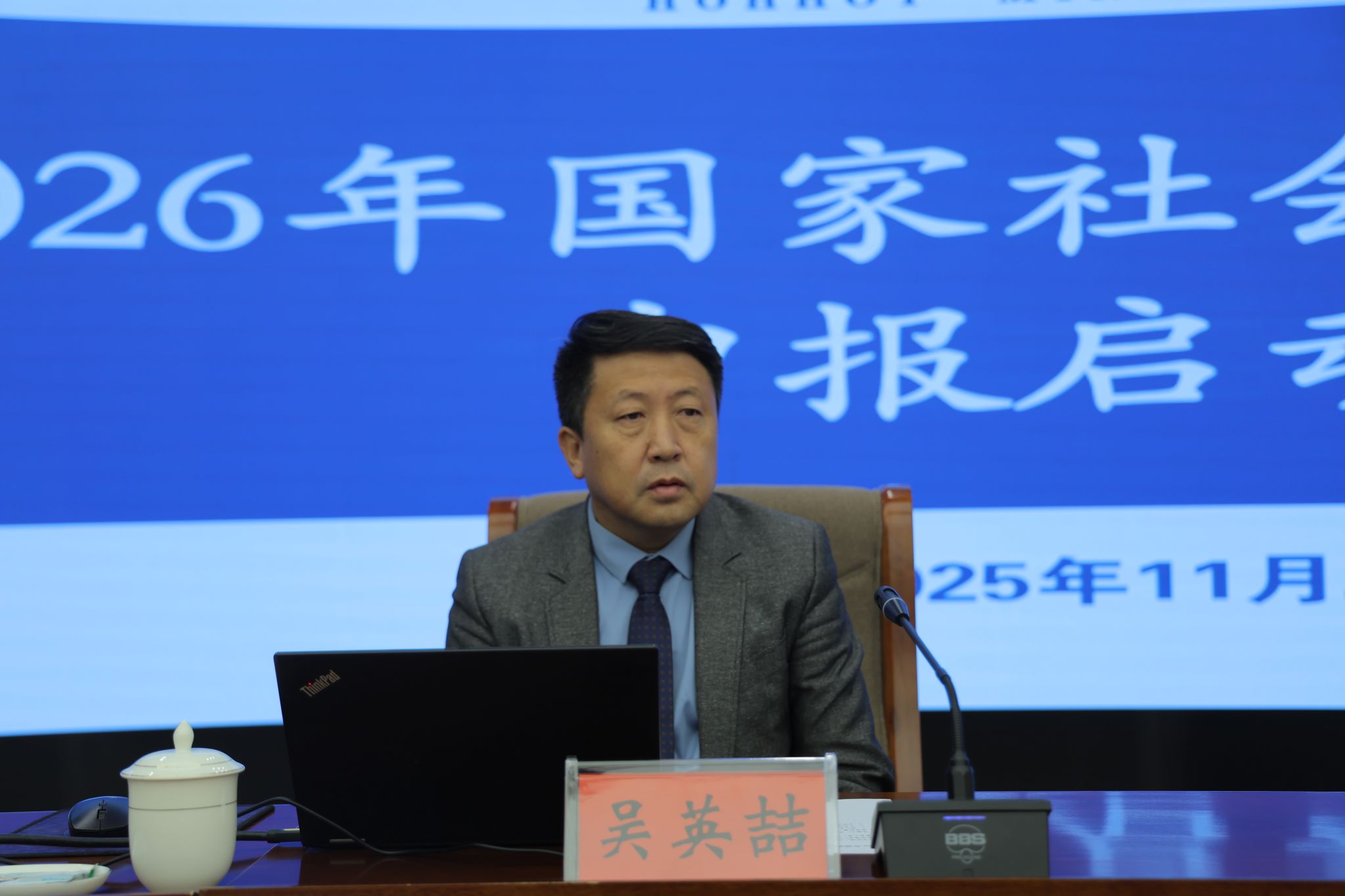 11月21日上午,我校在綜合樓12樓會議室召開2026年度國家社會科學基金項目申報啟動會。會議特邀教育部“長江學者獎勵計劃”特聘教授、內蒙古大學吳英喆教授作專題輔導。校黨委委員、副校長額爾敦布和主持會議,副高以上職稱人員、具有博士學位的教師以及科研處(社科處)全體人員參加了會議。