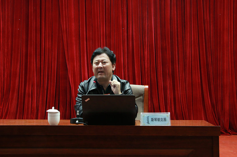 10月27日,作曲博士、國家一級作曲、中央民族大學音樂學院教授、學科帶頭人、碩士研究生導師、中國音樂家協會會員、中宣部文化名人暨《四個一批人才》、享受國務院特殊津貼、教育部新世紀人才、全國五一勞動獎章獲得者、全國五四青年獎章獲得者、我校客座教授斯琴朝克圖應邀在圖書館二樓報告廳為我校師生作了題為《我的創作與感想》的專題講座,500余名師生共同聆聽講座。講座由科技處處長包賽吉拉夫主持。