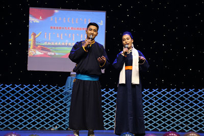 一場(chǎng)盛大絢麗的民族服飾秀拉開了晚會(huì)的帷幕。同學(xué)們身著華麗的蒙古袍展示了蒙古族服飾文化的精妙;題為“傳媒系大學(xué)生共話十九大”的舞臺(tái)劇將師生關(guān)注的十九大的內(nèi)容搬上了舞臺(tái),同學(xué)們以師生互動(dòng)的演繹方式表達(dá)了少數(shù)民族大學(xué)生對(duì)十九大的關(guān)注和師生喜迎十九大的激動(dòng)心情;“配音表演節(jié)目”由播音與主持藝術(shù)專業(yè)的同學(xué)精心策劃和演出,他們用鮮活幽默的語言表達(dá)了我系大學(xué)生對(duì)十九大的熱切關(guān)注。傳媒系師生以民族特色十足的歌舞、詩歌朗誦、小型舞臺(tái)劇、小品、配音表演、小視頻展播等多種表演形式表達(dá)了對(duì)黨的熱愛和對(duì)黨的事業(yè)的支持。