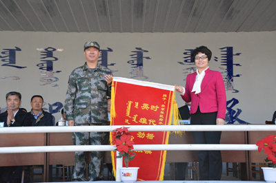胡春梅副書記向承訓部隊領導贈送錦旗 |