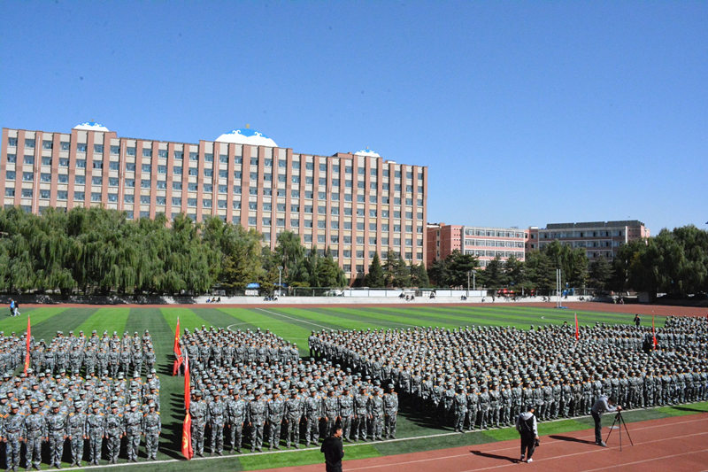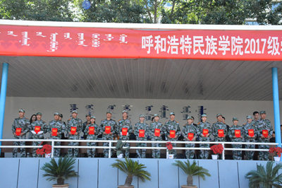 大會在莊嚴的國歌聲中開始,院長格日樂圖在軍訓團領導的陪同下,檢閱了新生方隊。全校受訓學生邁著整齊的步伐,喊著響亮的口號,依次通過主席臺,接受部隊和學校領導的檢閱。他們英姿颯爽,目光堅毅,展現出呼和浩特民族學院青年學子勃勃生機和奮發向上的精神風貌。接著,2017級新生進行了分列式、隊列會操、內務整理、百人戰地救護、軍歌和軍體拳等匯報表演,并擺出了“民院喜迎十九大”等字樣,以實際行動迎接黨的十九大勝利召開。