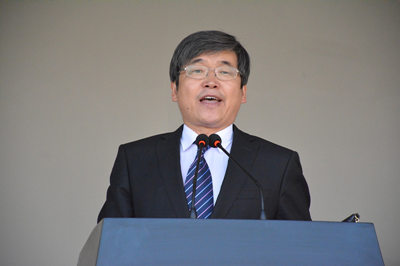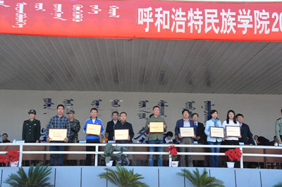 隨后,阿拉坦倉副院長宣布了2017級新生軍訓工作先進集體和個人表彰決定,并鄭重表達祝福語。教官代表李國龍同志作了軍訓工作的總結發言;體育系唐培琦同學代表全體2017級參訓學生暢談了軍訓體會和心得;學生處副處長包倉接回了軍訓團旗。