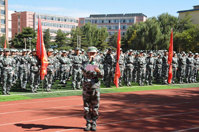 其次,北京軍區(qū)給水團武俊亭團長致辭。武團長強調指出,新生要提高認識,牢固樹立保家衛(wèi)國的國防意識;要嚴明紀律,牢固樹立令行禁止的紀律意識;要態(tài)度端正,牢固樹立互幫互助的團隊意識,圓滿地完成軍訓任務。