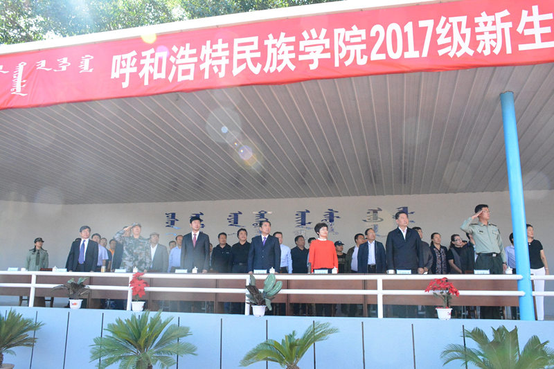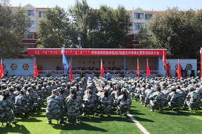 2017年9月11日上午10時,我校2017級新生開學典禮暨軍訓動員大會在學校操場隆重舉行。學校黨委書記孫國權,黨委副書記、院長格日樂圖,黨委副書記胡春梅,副院長阿拉坦倉、賀希格吉雅、納麗娜及北京軍區(qū)給水團團長武俊亭上校、內蒙古軍訓辦參謀張鵬飛少校出席大會,各職能部門負責人、系(部)黨總支書記、系主任、團總支書記、新生班主任及2017級全體新生參加了此次大會。大會由副院長納麗娜主持。
