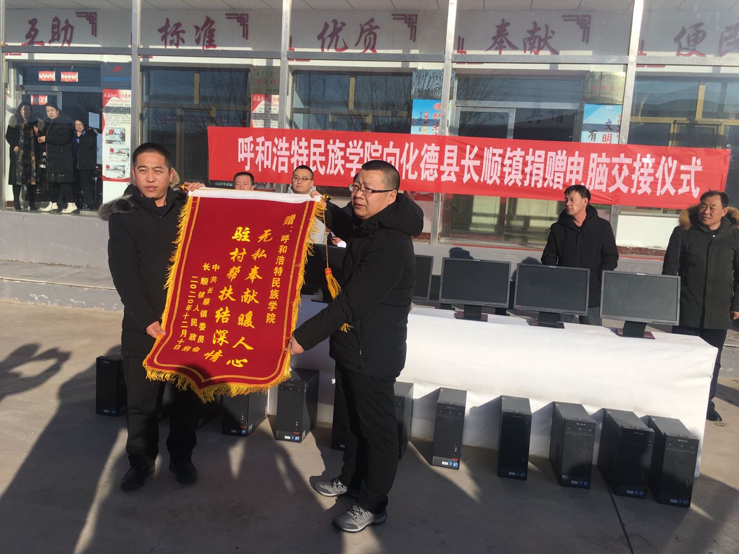 根據結對幫扶點的實際需求,經過前期精心籌備,12月10日下午,我校將組織籌集的180臺電腦,由駐村干部向化德長順鎮進行了捐贈,幫扶捐贈儀式在長順鎮永勝社區黨群服務中心舉行。長順鎮全體班子成員,各村、各社區支部書記參加捐贈儀式