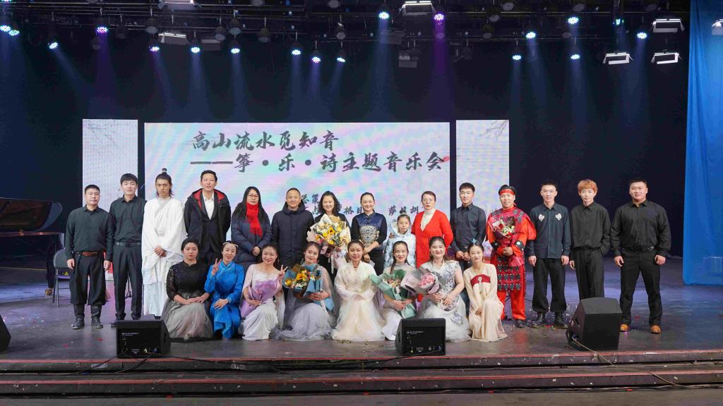 音樂會由學(xué)院領(lǐng)導(dǎo)班子共同策劃,器樂教研室承辦,曹韻、劉麗穎老師具體指導(dǎo)完成。音樂會內(nèi)容新穎、富有創(chuàng)意,將古箏(漢箏)、雅托克(蒙古箏)、馬頭琴、詩歌、情景劇等融會貫通,加上由蒙古族、漢族、藏族學(xué)生進行演繹,節(jié)目體現(xiàn)了多民族文化相互交融形成豐富多彩的中華民族共同體文化之內(nèi)涵。