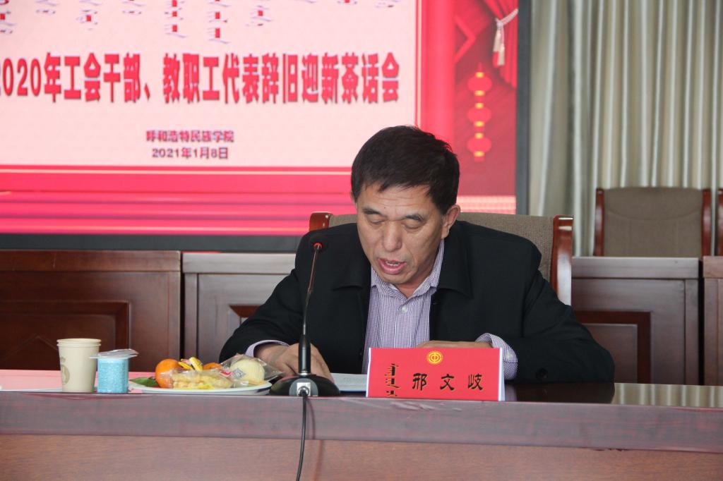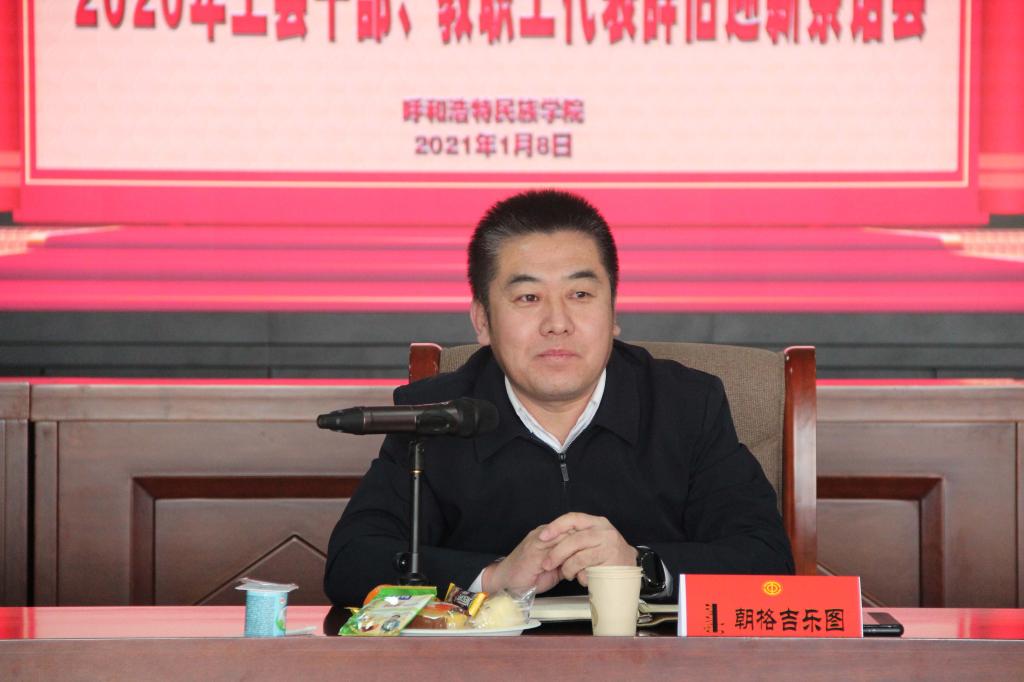 校黨委委員、黨政辦主任朝格吉樂圖致辭,他首先向在座的各位并通過他們向全體教職員工致以新年的祝福,對一年來為工會工作,辛勤付出的教職工表示誠摯的慰問和衷心的感謝!同時對2020年的工作進行了簡要的回顧并對2021年的工作進行了展望。