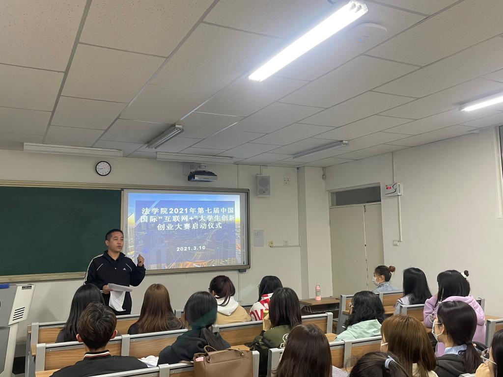 根據(jù)《學(xué)校2021年第七屆中國(guó)國(guó)際"互聯(lián)網(wǎng)+"大學(xué)生創(chuàng)新創(chuàng)業(yè)大賽的通知》要求,3月10日,法學(xué)院第七屆中國(guó)國(guó)際"互聯(lián)網(wǎng)+"大學(xué)生創(chuàng)新創(chuàng)業(yè)大賽啟動(dòng)儀式在尚智樓201室舉行。儀式由學(xué)院黨總支包玉柱副書(shū)記主持。