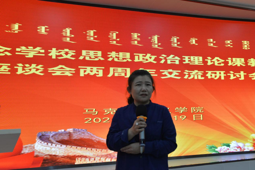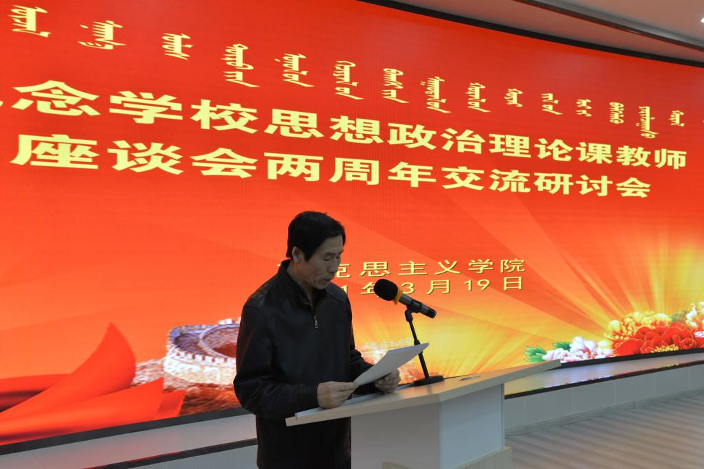 3月19日,在學(xué)校思政課教師座談會(huì)兩周年之際,馬克思主義學(xué)院召開(kāi)紀(jì)念學(xué)校思想政治理論課教師座談會(huì)兩周年交流研討會(huì),會(huì)議由學(xué)院副院長(zhǎng)吳美榮主持,4位思政理論課程負(fù)責(zé)人分別作交流研討,黨總支書(shū)記額斯日格倉(cāng)做總結(jié)發(fā)言,馬克思主義學(xué)院師生150余人參加了研討會(huì)。