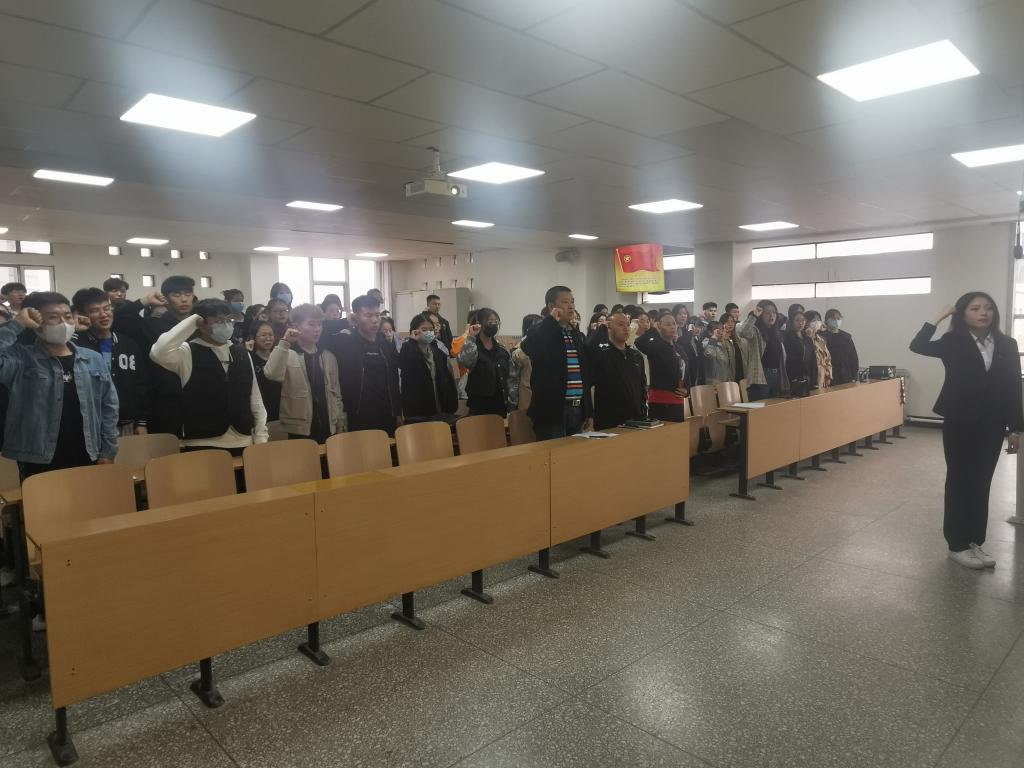 首先由學生代表李佳瑤帶領全體人員進行了重溫入團誓詞儀式,現場莊嚴肅穆,參與活動的團員黨員再一次重溫誓詞心中無限感慨,誓詞字字在耳,句句入心,激勵和鼓舞著在場所有人,立志不忘初心、牢記使命,樹立遠大理想,不負青春、不負韶華、不負時代。