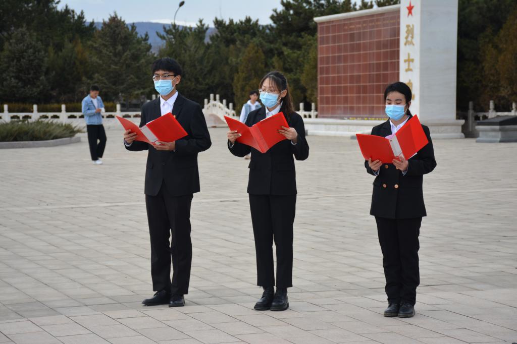 本次活動在莊嚴的烈士紀念碑下進行,在場師生向紀念碑敬獻花籃、鞠躬默哀、寄托哀思,重溫了入團誓詞,主題演講“烈士頌”表達了對先烈們的緬懷之情。