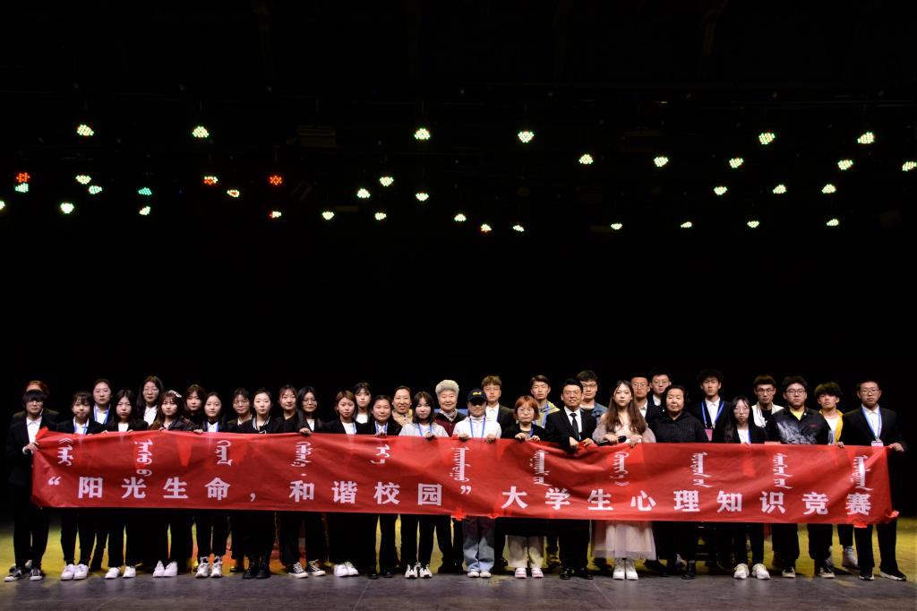 為豐富校園文化,更好地宣傳心理健康知識(shí),提高大學(xué)生的心理素質(zhì),增強(qiáng)大學(xué)生健康心理意識(shí),我校于4月16日在演播廳舉辦了“陽光生命,和諧校園”大學(xué)生心理健康知識(shí)決賽,學(xué)生工作部張玉梅副部長(zhǎng)、扎力嘎胡副主任、娜布其瑪教授及校學(xué)生會(huì)主席孫明達(dá)擔(dān)任評(píng)委。此次活動(dòng)由學(xué)校黨委學(xué)生工作部主辦、大學(xué)生心理咨詢中心承辦,在初賽和決賽中共有1000多名學(xué)生參與其中。
