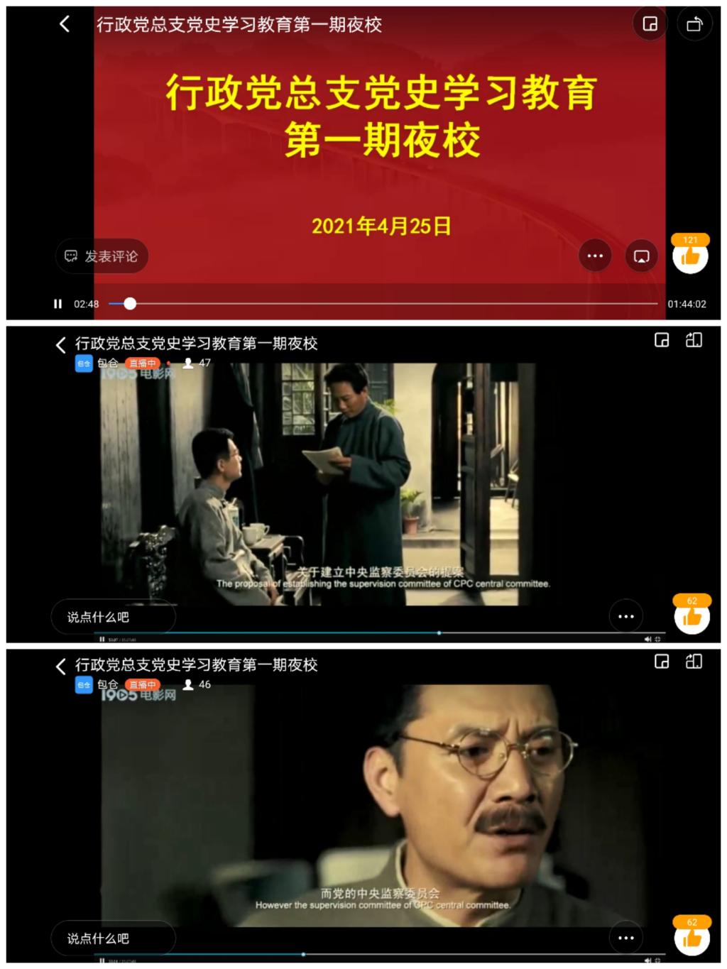4月25日晚上7時40分,通過釘釘直播形式,舉辦了黨總支黨史學(xué)習(xí)教育第一期夜校,向全體黨員和處級干部播放了黨史愛國主義影片《忠誠與背叛》,影片通過真實(shí)感人的故事、豐滿生動的人物形象,譜寫了第一屆中央監(jiān)察委員會成立、十名監(jiān)察委員忠于職守、為黨履職的光輝篇章,著力塑造了中央監(jiān)察委員會第一任主席王荷波、副主席楊匏安的英雄形象,熱情謳歌了老一輩黨的紀(jì)監(jiān)干部威武不屈、剛正不阿、忠于革命、視死如歸的大無畏革命精神。使廣大黨員和干部收到了心靈的洗禮和進(jìn)行了很好地對黨忠誠、對國家忠誠、對人民忠誠的黨性教育。