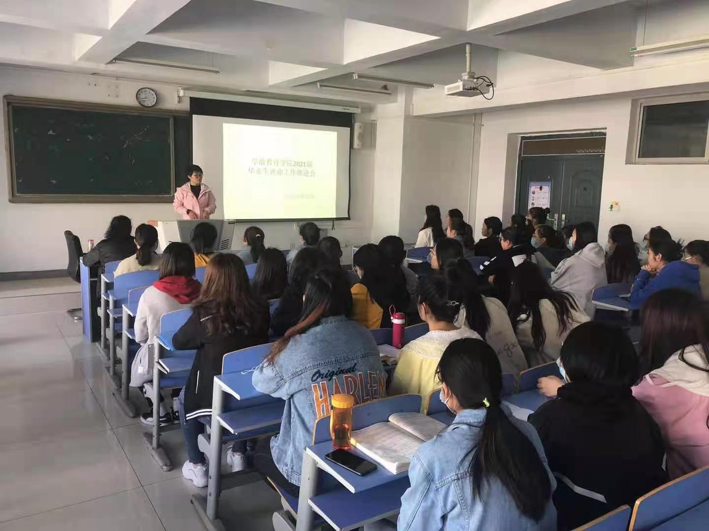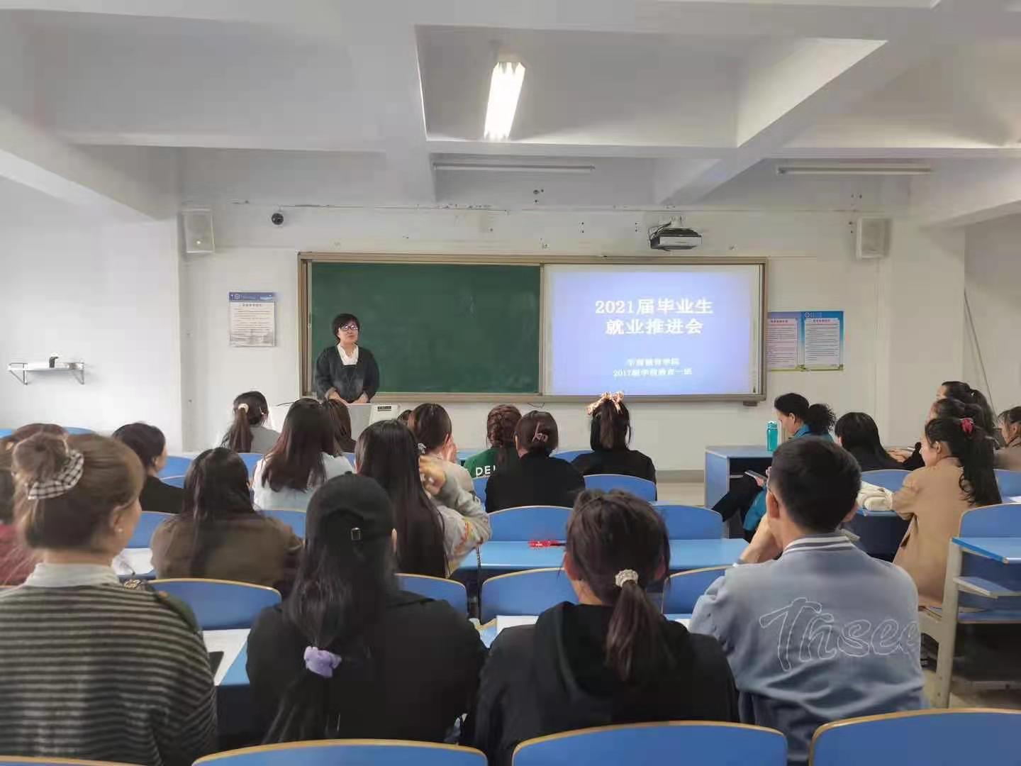 為深入貫徹落實自治區、學校關于促進高校畢業生就業工作文件精神和決策部署,推動學院進一步完善就業工作服務體系,確保我院2021屆畢業生順利、高質量就業,學前教育學院于4月27日在都林樓310、312、314教室分別組織2021屆畢業生召開了就業工作推進會。學院黨總支書記娜仁其木格老師、學院就業工作負責人張璟華老師參加會議,會議由學前教育學院畢業班班主任老師主持。