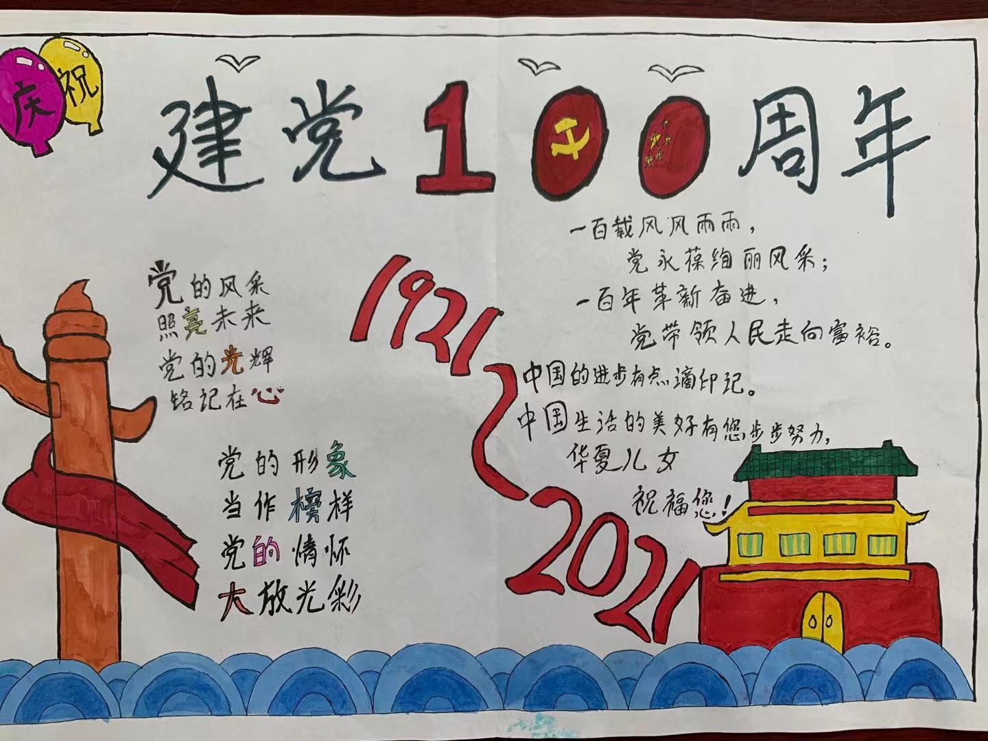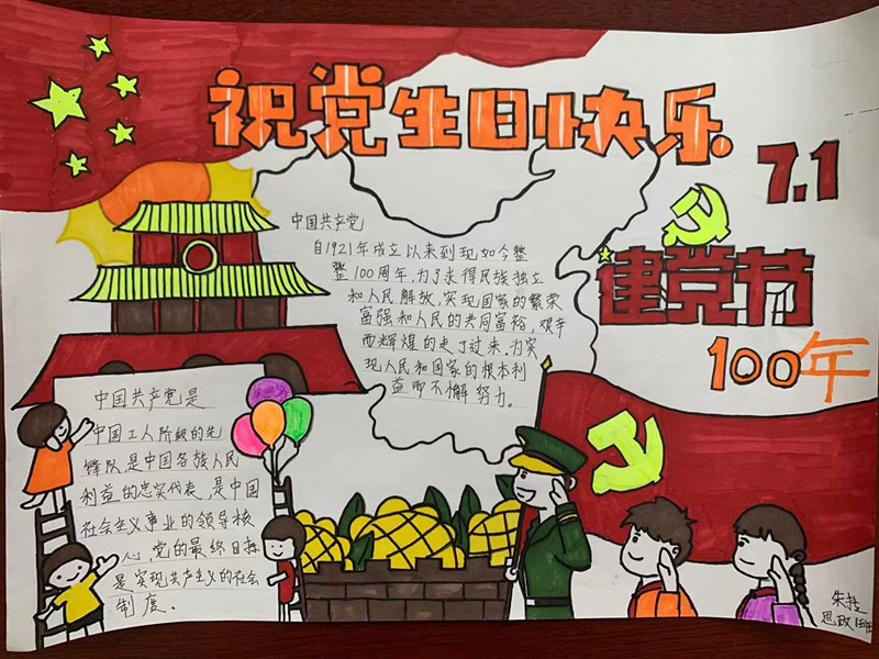 通過(guò)同學(xué)們精心設(shè)計(jì)、反復(fù)修改、用心裝飾的19幅作品,展現(xiàn)出中國(guó)共產(chǎn)黨誕生、發(fā)展、壯大的艱難歷程。此次活動(dòng),不僅讓大家回顧了中國(guó)共產(chǎn)黨人艱苦奮斗、不屈不撓的革命精神,更為大家提供了為黨獻(xiàn)禮的平臺(tái),引領(lǐng)學(xué)生用自己的方法,表達(dá)對(duì)黨、對(duì)祖國(guó)的熱愛(ài)。