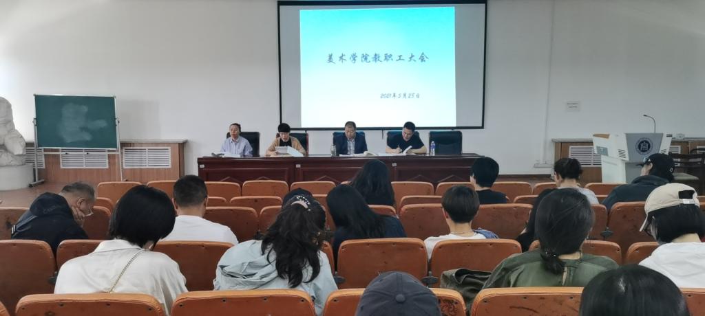 5月28日下午,美術學院在美術樓四樓階梯教室召開了全體教職工大會。會議由美術學院副院長高特木樂主持,黨總支書記包旭東、黨總支副書記吳利春、副院長塔娜以及全體教職工、外聘教師50多人參加了本次會議。