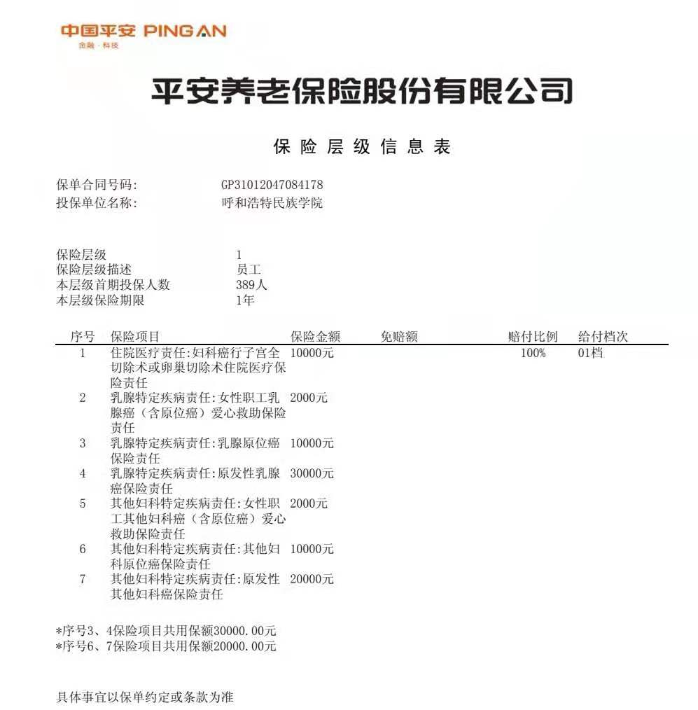 工會還為全校389名在職女教職工辦理了“特病保險”,保險費共計壹萬肆仟柒佰捌拾貳元(14782元)全部由學校工會支付,保險期限為1年,自2021年5月23日零時起至2022年5月22日二十四時止。