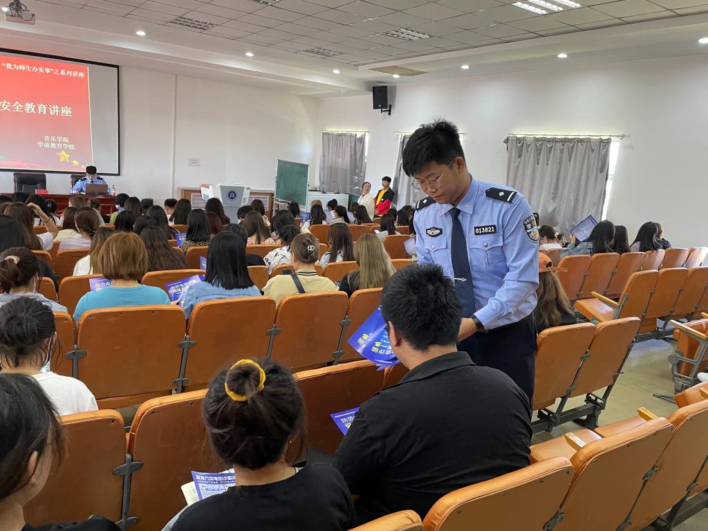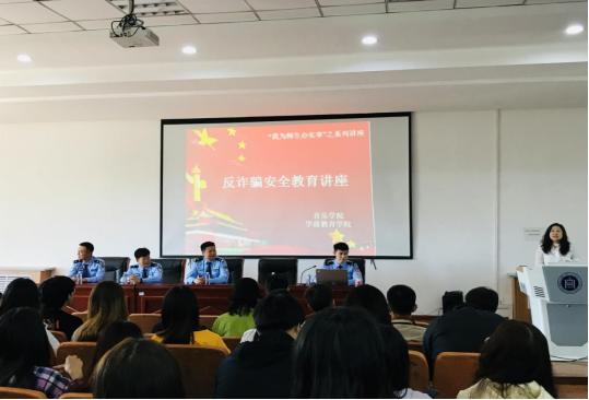 根據(jù)學(xué)校黨史學(xué)習(xí)教育工作決策部署,進(jìn)一步深化落實“我為師生辦實事”實踐活動,全面加強學(xué)生安全管理教育工作,音樂學(xué)院、學(xué)前教育學(xué)院于6月3日下午邀請到了呼和浩特市公安局反詐中心張巍、李鑫警官一行來我校開展反詐騙安全教育講座。