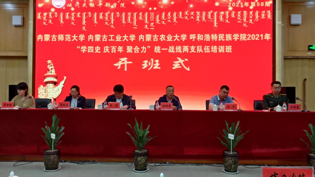 在中國共產黨成立100周年之際,為了鑄牢中華民族共同體意識,在統一戰線中扎實深入開展“四史”學習教育活動,團結和凝聚統一戰線力量,6月1日——6月4日,呼和浩特民族學院聯合內蒙古師范大學、內蒙古工業大學、內蒙古農業大學在城川民族干部學院開展2021年“學四史 慶百年 聚合力”統一戰線兩支隊伍培訓。學校黨委委員、黨委統戰部部長包君帶領學校統戰干部隊伍和黨外干部隊伍共19名教師參加培訓。