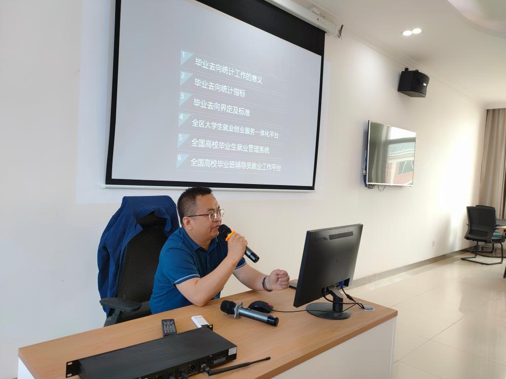 就業派遣數據政策性強、規范性強,數據量大,質量要求高,為切實提高各二級學院就業工作人員對就業信息錄入的準確性,6月9日上午,就業指導處邀請內蒙古自治區高校學生就業創業服務中心信息部部長張建廣在創業樓四樓實訓室舉辦了就業系統工作人員專題培訓。就業指導處全體人員、各二級學院負責就業系統工作人員和分管就業工作的學院領導參加了本次培訓。培訓會由就業指導處處長包倉主持。