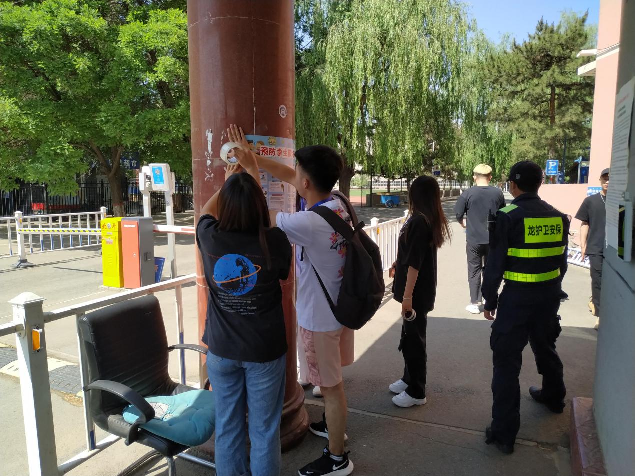 同日,為預防校園欺凌、霸凌事件的發生,號召學生遠離校園暴力,共建和諧、平安、陽光校園。保衛處召集學生校衛隊,在學校各個公寓門前張貼預防校園欺凌霸凌安全教育宣傳海報14張,發放相關宣傳資料100余份。