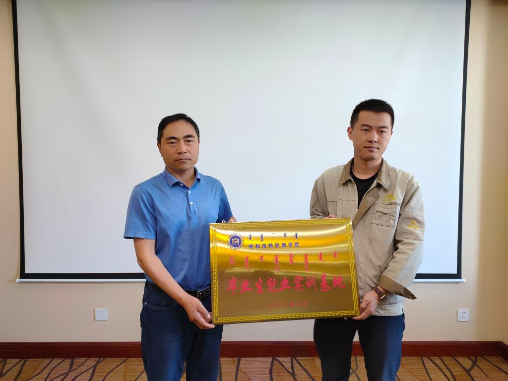 隨后,財務總監王永霞與包倉處長分別代表雙方簽訂了合作協議,公共管理學院黨總支書記海霞、化學與環境學院院長李福全分別向豪生大酒店、內蒙古多蒙德冶金化工集團有限公司授了“呼和浩特民族學院畢業生實訓基地”牌匾。