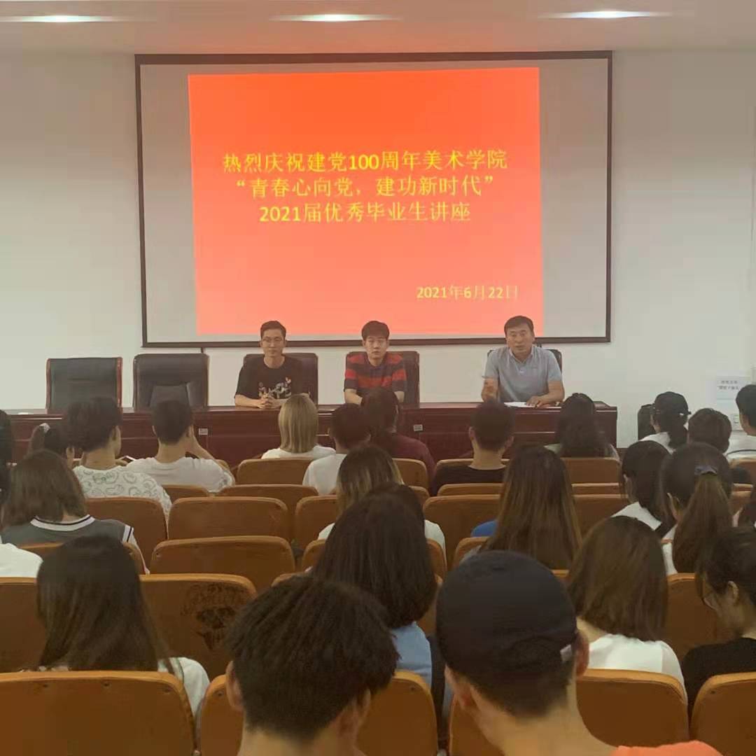 為進(jìn)一步增強(qiáng)學(xué)生黨員黨性觀念,促進(jìn)學(xué)生黨員牢固樹立“四個(gè)意識(shí)”,堅(jiān)定“四個(gè)自信”,積極發(fā)揮優(yōu)秀黨員畢業(yè)生的模范帶頭作用,在全體學(xué)生黨員、學(xué)生干部中深入推進(jìn)黨史學(xué)習(xí)教育,6月22日晚,美術(shù)學(xué)院在美術(shù)樓四樓階梯教室舉辦了慶祝建黨100周年“青春心向黨,建功新時(shí)代”優(yōu)秀黨員畢業(yè)生專題教育講座。本次講座由學(xué)生二支部書記常志君主持,邀請(qǐng)了2017級(jí)版畫2班的宋睿雄同學(xué)和2017級(jí)中國(guó)畫2班的胡錦浩同學(xué)擔(dān)任主講,美術(shù)學(xué)院全體學(xué)生黨員、重點(diǎn)培養(yǎng)對(duì)象、入黨積極分子和學(xué)生干部100多人參會(huì)。