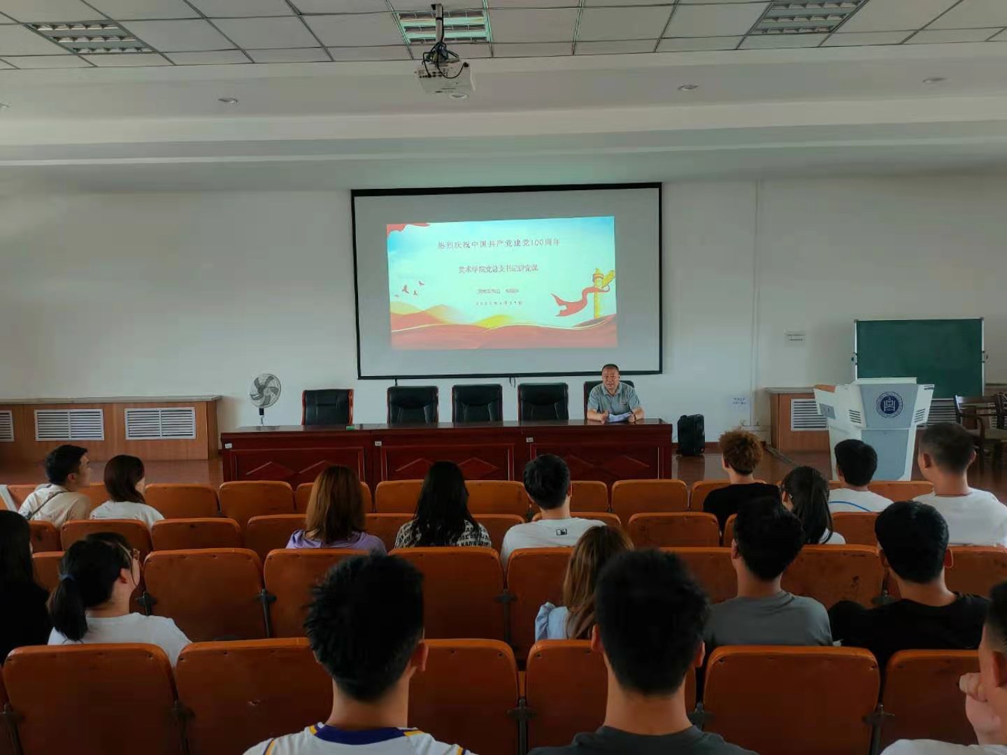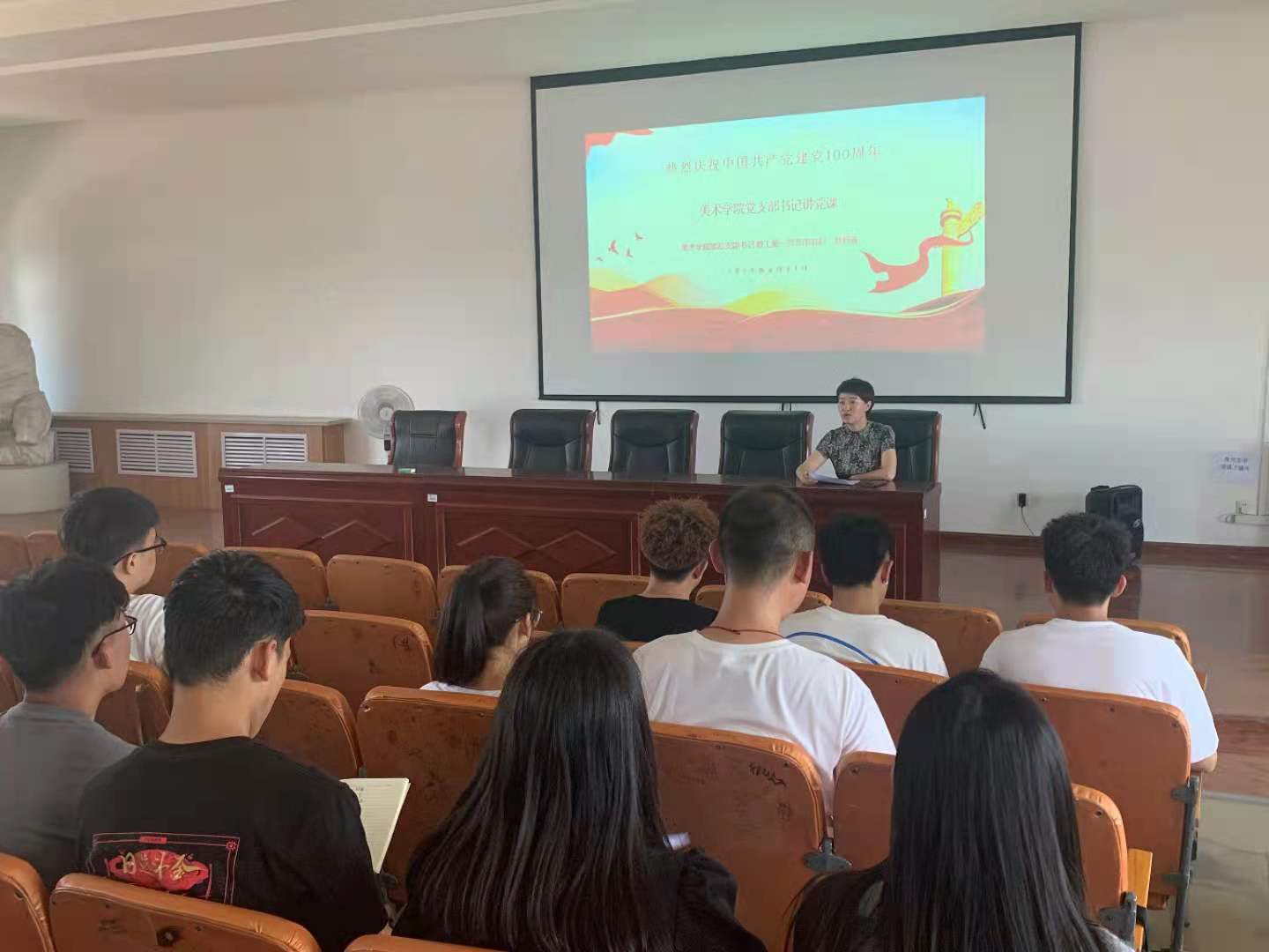 本次培訓班由美術學院黨總支書記包旭東作了題為《建黨百年憶初心,砥礪奮進擔使命》的專題輔導黨課;美術學院黨總支副書記、教工一支部書記吳利春作了《中國共產黨章程解讀講座》;美術學院副院長、教工二支部書記塔娜作了《光輝百年歷程》黨史專題輔導講座;學生一支部書記魏偉作了《習近平總書記在黨史學習教育動員大會上的重要講話精神學習輔導講座》;學生二支部書記常志君作了《鑄牢中華民族共同體意識專題輔導講座》以及邀請兩位畢業生黨員作了《青春心向黨,建功新時代》優秀黨員畢業生專題教育講座。6月28日上午,還組織師生黨員在辦公樓四樓會議室聆聽了美術學院聯系領導、學校紀委書記、監察專員王冬梅講授的《中國共產黨紀律處分條例》(2018年修訂版)解讀專題講座。