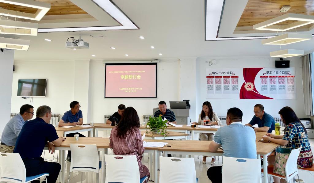 為深入學習貫徹習近平總書記在慶祝中國共產黨成立100周年大會上的重要講話精神,隆重慶祝建黨100周年,扎實推進黨史學習教育,7月5日下午,行政黨總支中心組在黨總支學習室召開專題學習研討會,黨總支理論中心組全體成員參會,會議由黨總支書記包倉主持。
