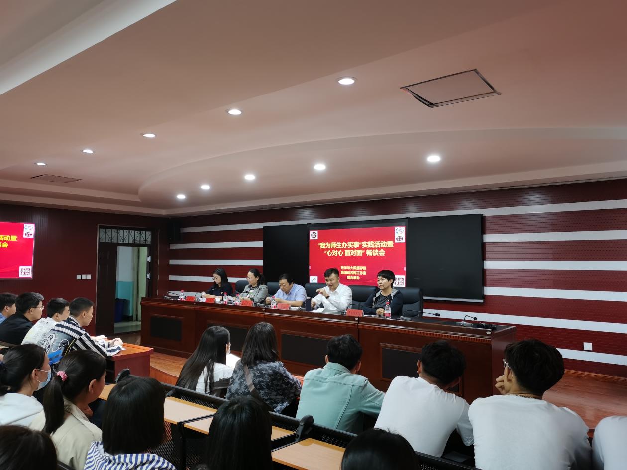 師生“心對心 面對面”活動是數學與大數據學院與張海峰名師工作室將黨史學習教育轉化為推進學生服務工作不斷提升的實際行動。本著以學生為主體,以教師為主導,以問題為導向,精準服務學生的原則,數學與大數據學院始終把促進學生成長成才作為各項工作的出發點和落腳點。為深入了解大一新生的學習生活狀況,切實解決同學們遇到的實際問題和心理困惑,引領同學們更好地處理學習、生活的關系,數學與大數據學院聯合張海峰名師工作室于9月15日下午在尚智樓413報告廳舉辦師生“心對心 面對面”暢談會,數學與大數據學院院長王海清教授、副院長額爾敦其其格副教授、宣傳部副部長張海峰副教授、輔導員金玲及140多名學生參加會議,會議由數學與大數據學院黨總支副書記郝喜鳳主持。