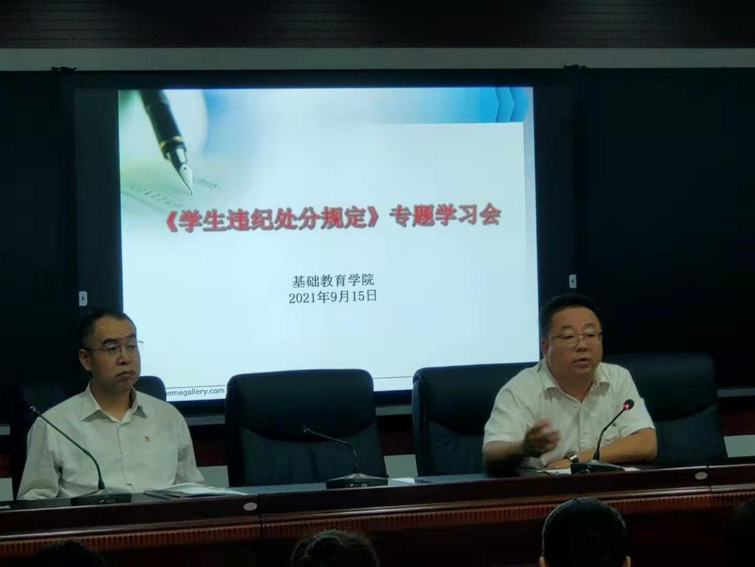 見面會后,黨總支書記常喜和團總支書記胡寶泉分別就學校學生違紀處分規定和資助管理手冊進行了詳細的領學和講解。