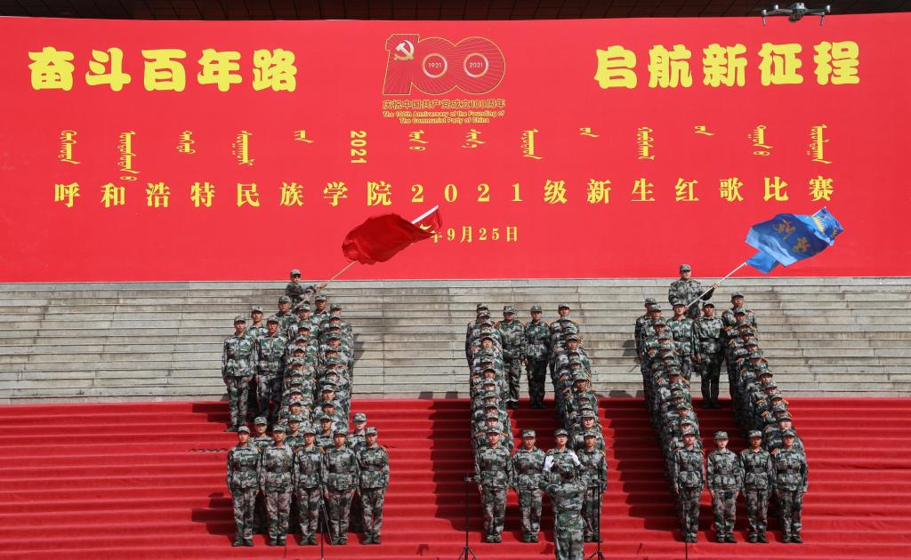 本次共有17支代表隊參賽,每支代表隊演唱兩首紅色軍旅歌曲。比賽由蒙古學學院歌曲《我愛我的黨》開場,同學們通過演繹《愛我中華》《沒有共產黨就沒有新中國》《我和我的祖國》等經典歌曲,盡情展示著青春的風采。各參賽隊,用不同的方式演繹著同一首歌曲,為歌詠比賽增光添彩。音樂學院運用民族樂器進行歌曲的演奏,嘹亮悅耳的歌聲唱出了青年學子的朝氣蓬勃。新聞傳媒學院、法學院用隊形排列的方式,慶祝黨的一百周年華誕,流露出了民族團結一家親的情感,也激發了同學們的愛國之情。最終,音樂學院獲得第一名,學前教育學院獲得第二名,文學院、新聞傳媒學院獲得第三名,美術學院獲得第四名,外國語學院、經濟管理學院、民族學學院獲得第五名,基礎教育學院、體育學院、公共管理學院獲得第六名。
