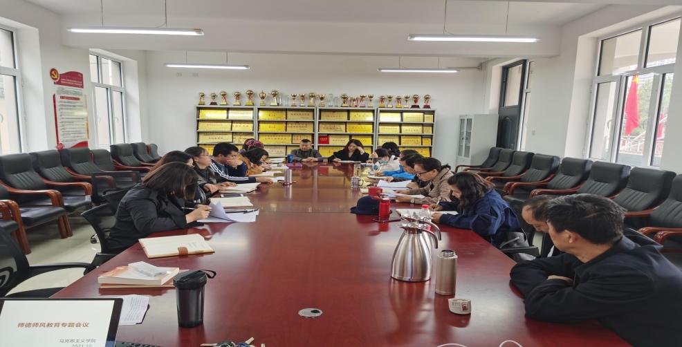 為進(jìn)一步加強(qiáng)思政理論課教師隊(duì)伍建設(shè),提升教師素質(zhì),塑造良好的師表形象,根據(jù)學(xué)校師德師風(fēng)專題教育工作方案要求,馬克思主義學(xué)院于10月8日下午組織全體教職工召開師德師風(fēng)專題學(xué)習(xí)會(huì)議。馬克思主義學(xué)院全體教職工參加了本次專題學(xué)習(xí)會(huì)議。會(huì)議由馬克思主義學(xué)院黨總支書記額斯日格倉主持。