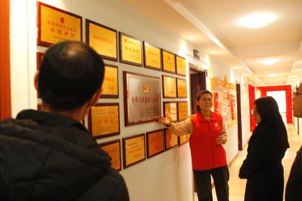 揭牌儀式結束后,與會人員參觀學習該社區“美好生活”“凝心聚力”“志愿奉獻”和“民族團結”四大功能廳及工作區域。