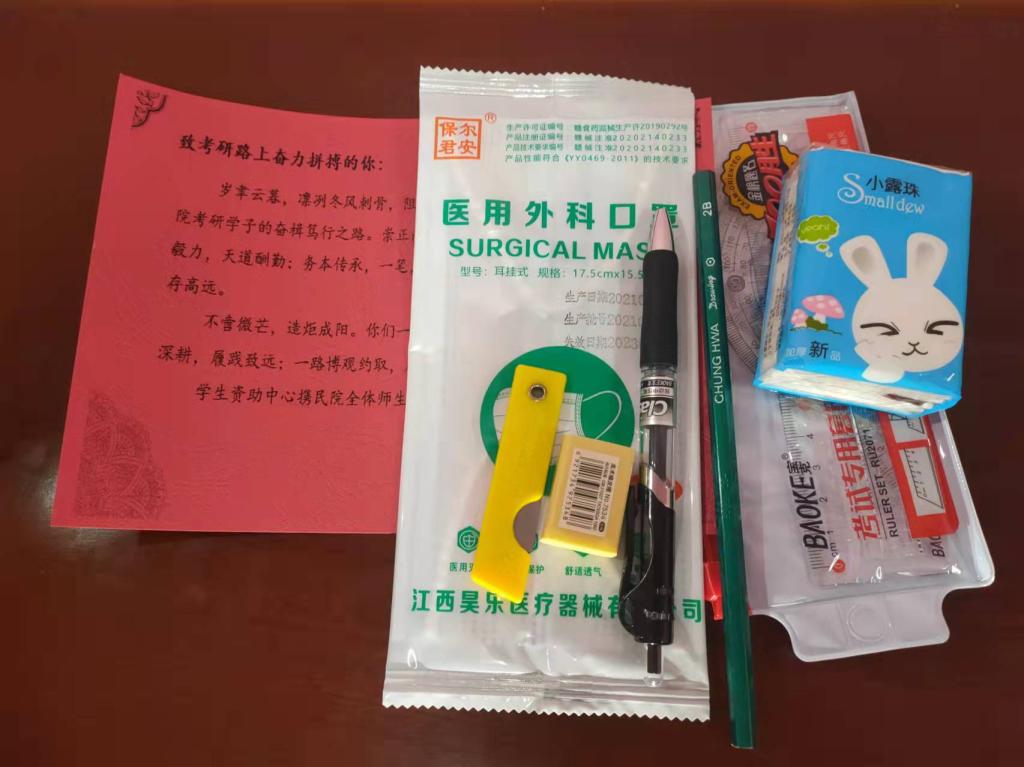 領到考研禮包的同學滿懷感激,他們表示,從大一入校開始,學校就一直給予著我們無微不至的關懷,而這次學校以這種方式為我的考研之路保駕護航,更是讓我的內心倍感溫暖,也讓我更加有信心迎接考研,實現理想抱負!