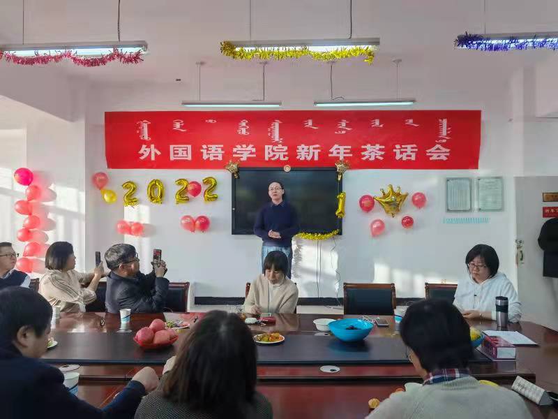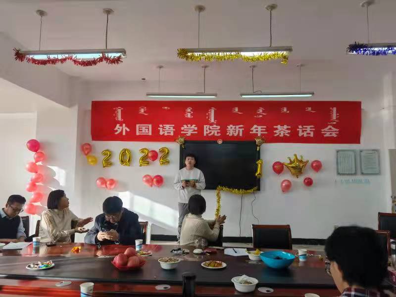 活動伊始,由布日古德書記和肖查娜院長代表學(xué)院對全體教師致以賀詞,對我院全體教師過去一年的辛勤付出給予肯定和感謝并送上真摯的新年祝福。隨后,教師代表潘興安、胡日查畢力格以及學(xué)生代表呂廣杰分別為此次茶話會獻(xiàn)上動聽的歌曲,“句子接龍”“交頭接耳”“誰是臥底”等充滿樂趣的游戲和獲獎禮物盲選等環(huán)節(jié)為茶話會增添了濃濃的節(jié)日氛圍。