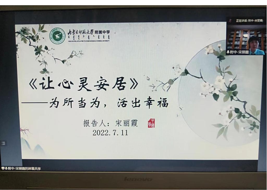 7月11日,文學院邀請內蒙古師范大學附屬中學高級教師宋麗霞在線舉辦了題為《讓心靈安居——為所當為,活出幸福》的名師講座。講座由文學院院長崔鳳珍主持,文學院黨政辦主任韓玉英和2019級小學教育、漢語國際教育專業200多名學生聆聽了講座。