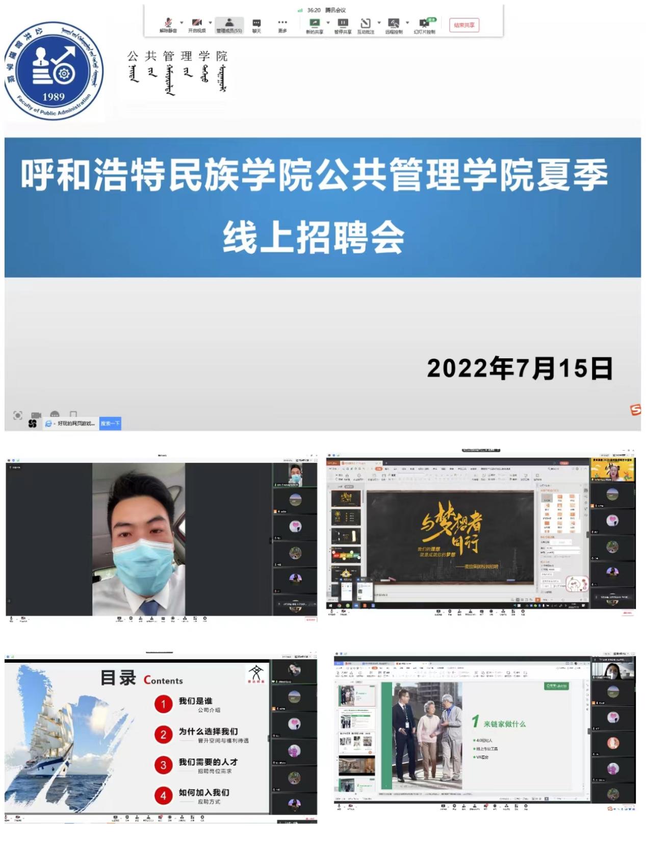 為切實做好我院2022屆畢業生就業工作,提前謀劃2023屆畢業生實習和就業工作,7月15日,學院召開2022屆畢業生線上招聘會,新絲路文旅企業管理有限公司、內蒙古信達檔案技術服務有限公司、北京麥田房產經紀有限公司、北京鏈家置地房地產經紀有限公司、貝殼找房呼和浩特區域合作公司等5家企業應邀參加,提供就業崗位100余個。會議由學院就業工作聯絡員前達蒙主持,學院黨總支書記海霞、黨總支副書記額爾敦格日樂,2022屆畢業班主任哈斯同力嘎、呼斯勒圖出席,2022屆、2023屆畢業生共百余人參加。