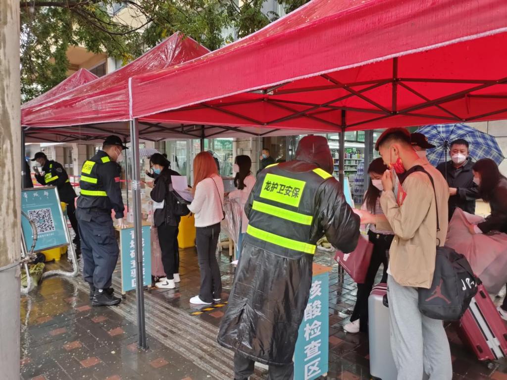 28日恰逢雨天,雖天氣陰冷,細雨蒙蒙,但保衛處全體干部職工、警長及保安人員于清晨5點半就到崗就位,以飽滿的精神面貌和暖心的服務迎接新生的到來。大家都在各自崗位嚴格履職,全程按照學校要求認真檢查每位學生的核酸證明、青城碼、行程卡、錄取通知書及體溫體征,耐心疏導校門車輛,維持良好暢通的環境。同時還安排了10輛為新生托運行李的愛心服務車,并由學生校衛隊志愿者負責服務。此外為了增強新生防范電信網絡詐騙意識,聯合新城公安分局人員開展防范電信網絡詐騙宣傳活動,組織到校全體新生下載了“國家反詐中心APP”。
