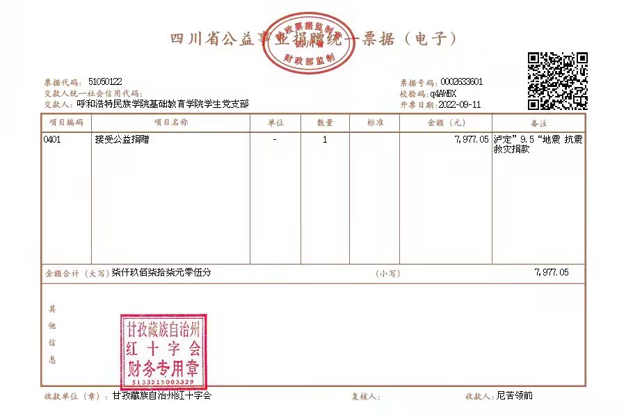 四川省公益事業(yè)捐贈統(tǒng)一票據(jù)
