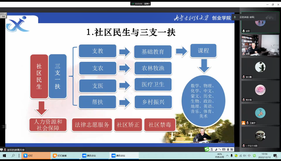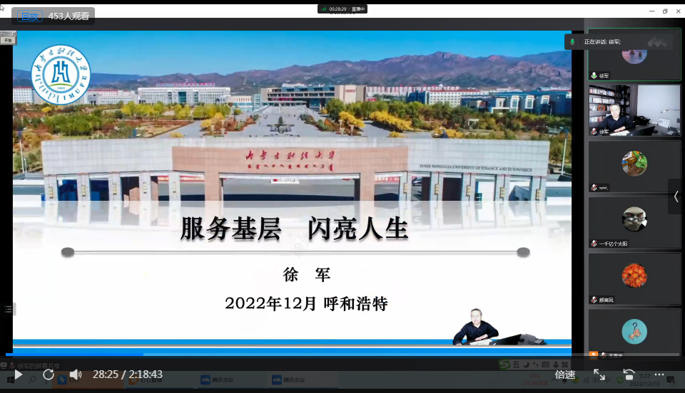 為深入學(xué)習(xí)貫徹黨的二十大精神,進(jìn)一步落實(shí)2023屆全國(guó)普通高校畢業(yè)生就業(yè)創(chuàng)業(yè)工作網(wǎng)絡(luò)視頻會(huì)議要求,按照自治區(qū)教育廳和學(xué)校就業(yè)創(chuàng)業(yè)工作部署,數(shù)學(xué)與大數(shù)據(jù)學(xué)院于12月10日上午通過(guò)釘釘平臺(tái)舉辦了以《服務(wù)基層 點(diǎn)亮人生》為題的專(zhuān)題輔導(dǎo)講座。本次講座邀請(qǐng)了來(lái)自?xún)?nèi)蒙古財(cái)經(jīng)大學(xué)創(chuàng)業(yè)學(xué)院副院長(zhǎng)徐軍副教授主講。學(xué)院全體師生共458人參加。講座由學(xué)院黨總支副書(shū)記郝喜鳳主持。