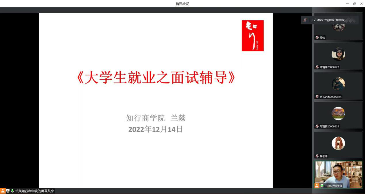 為進一步做好2023屆畢業生就業指導工作,引導畢業生樹立正確的就業觀念。12月14日晚,馬克思主義學院邀請內蒙古知行職業培訓學校校長、人力資源管理專家、立人人才集團咨詢顧問蘭燚講師,做《大學生就業面試輔導》專題講座。講座由馬克思主義學院黨總支副書記韓瓊主持,2023屆全體畢業生參加了講座。