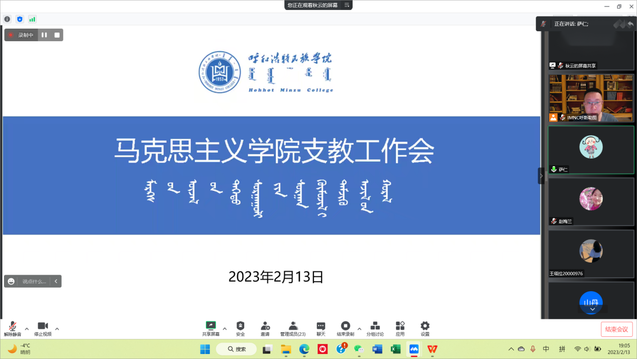 2月13日,馬克思主義學院組織召開了2023屆思想政治教育專業畢業生支教工作部署會議。副院長趙梅蘭,思想政治教育專業教研室主任薩仁通拉嘎參加了會議,呼斯勒圖老師主持會議,20名支教學生參會。