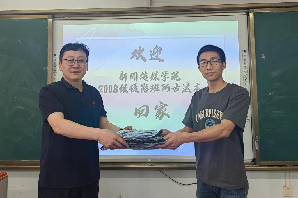為慶賀學校即將到來的70周年校慶,5月17日,新聞傳媒學院2011屆攝影班校友、淘德文化影視工作室創始人阿古達木向母校捐贈50套學士服,學院領導班子和相關負責人參加捐贈儀式。